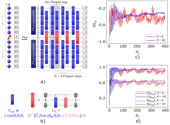 In the second part, we utilized the periodic M-matrix formulation introduced by Heyl and Kehrein, alongside bosonization and refermionization to analytically obtain an expression for the impurity magnetization for the discrete (i.e. our Floquet circuit case) and the continuum case in the thermodynamic limit. We observe an excellent match in decay rates without any curve fitting and our trends for frequency of oscillations match as well. However, our analytics predict overdamped oscillations, while our numerics do not show this, which we attribute to finite size effects for our very small system sizes. The paper is up on arXiv (https://arxiv.org/abs/2501.08499).